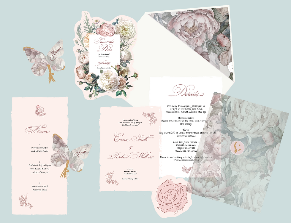 One of the most beautiful ways to elevate your Bridgerton aesthetic is by continuing it through your on-the-day stationery, such as: